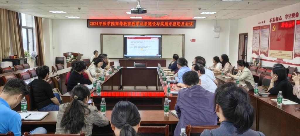 为进一步凝练教学特色、总结育人成果,推进医学院高等教育教学成果建设与奖励培育工作,10月17日下午,医学院在3教1306会议室召开高等教育教学成果建设与奖励申报动员大会。会议由院委员、副院长任婷主持,全体院领导、各科室主任、秘书、拟申报教学成果奖培育项目教师代表参加了本次线下会议。线上会议同步召开。