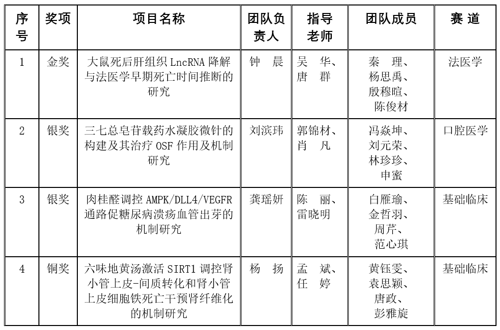 湖南中医药大学第十届全国大学生基础医学创新研究暨实验设计论坛总决赛获奖名单