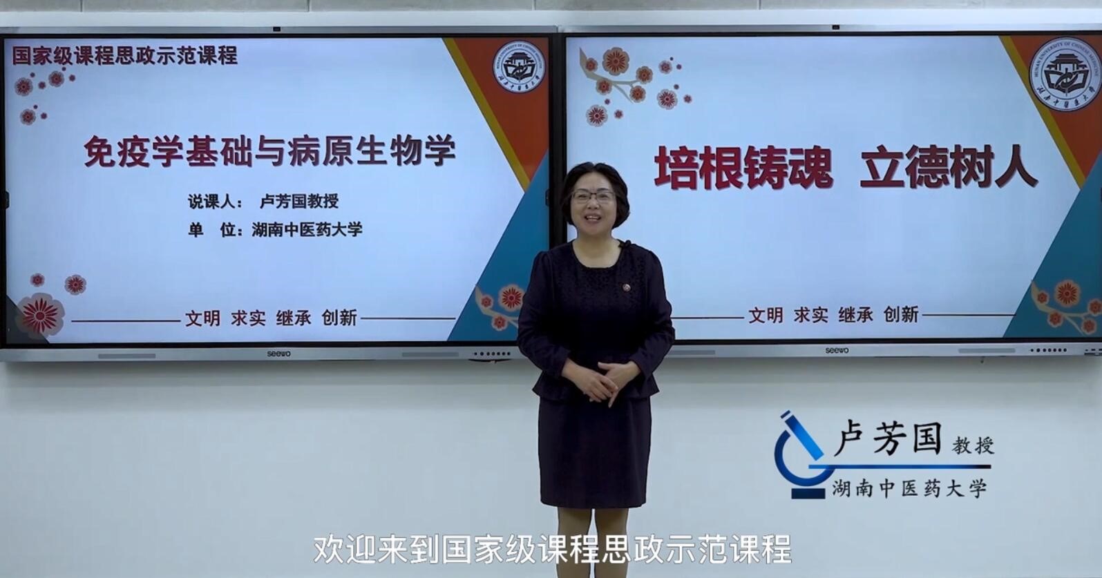 近日,我院卢芳国教授团队主讲的《免疫学基础与病原生物学》成功入选教育部首批普通本科教育课程思政示范培训课程(全国共34门)。该课程是全国中西医结合类唯一入选课程,也是湖南省三门入选课程之一。