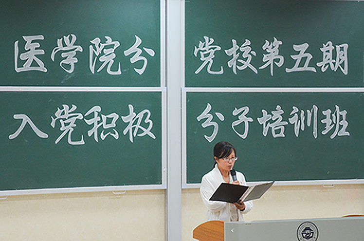 10月23日晚,医学院分党校第五期入党积极分子党课培训班开学典礼在3317教室顺利举行。医学院党委书记、分党校校长文红艳,信息科学与工程学院副院长丁长松,医学院党委副书记、分党校副校长王健,信息科学与工程学院学生管理科科长李晟,医学院学生管理科科长、分党校办公室主任李玉冰,医学院专职组织员、分党校党政办主任廖海燕以及全体入党积极分子共同参加了此次典礼。