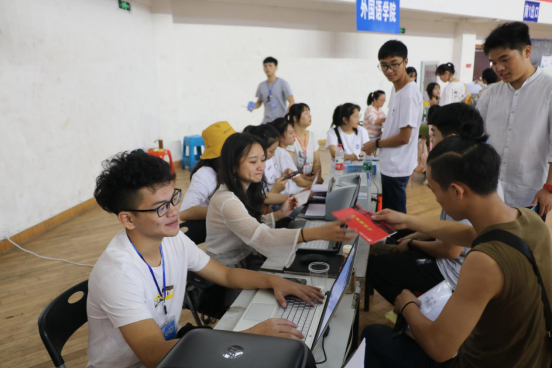 虽然天气炎热,工作繁琐,但是良好的工作素质和热情的工作态度使迎新工作人员成为一道美丽的风景线。看到新生和家长舟车劳累、汗流浃背地抵达迎新点,工作人员马上端上一杯凉水,接过一袋行李,亲切的一声问候,家长脸上都洋溢着满意的笑容。到达迎新点后所有入学流程都有工作人员引领,家长只需在迎新点等候,工作人员也会耐心解答家长们对学校的疑问。