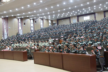文红艳书记作军训动员,并向同学们提出三点期望:一是深刻领悟,自觉参与;二是虚心向学,能者为师;三是谨本详始,艰苦朴素。文书记以“石以砥焉,化钝为利”激励同学们战胜挫折,缔造自我。
