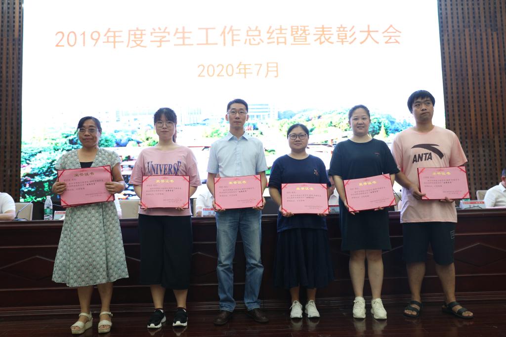 在此次表彰大会上,我院收获颇丰,分别荣获“2019年度学生工作先进单位”,“2019年文明寝室创建月活动‘先进单位’”;柳芊荣获“五佳辅导员”,李娥君荣获“2019年文明寝室创建工作先进个人”,刘华杰、胡倩、张变玲荣获校级“优秀班主任”,李娥君、王伟刚荣获“2019年辅导员、班主任职业技能培训‘优秀学员’”。同时,我院荣获“第八届辅导员素质能力大赛团体二等奖”,柳芊、彭嘉勋、易苏分别荣获第八届辅导员素质能力大赛个人一、二、三等奖。