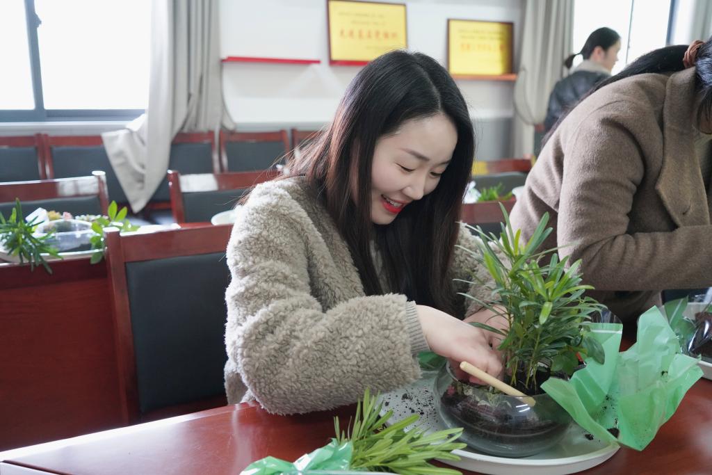 “你看我种得怎么样”“你搭配的盆栽真好看”在一片欢声笑语中,老师们从播撒知识的“园丁”摇身一变成孕育生命绿色的“巧匠”,完全沉浸在自我创作、欣赏之中。配色、种植、装饰……经过一个多小时的创作,一盆盆独具匠心、生机盎然的“纯手工盆景”仿佛一件件艺术品,在大家手中焕发出勃勃生机,展现出别样的魅力。