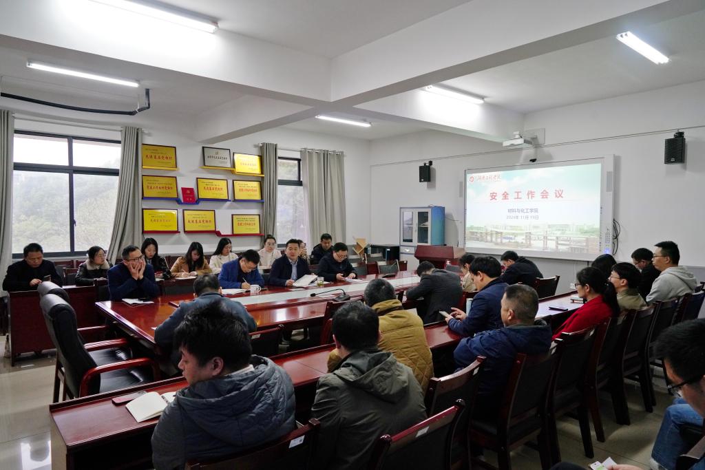 11月19日上午,我院在材化楼A304召开安全工作会议,院领导、教研室主任,实验室老师、班主任和全体辅导员参加,会议由院党委书记徐粤宇主持。
