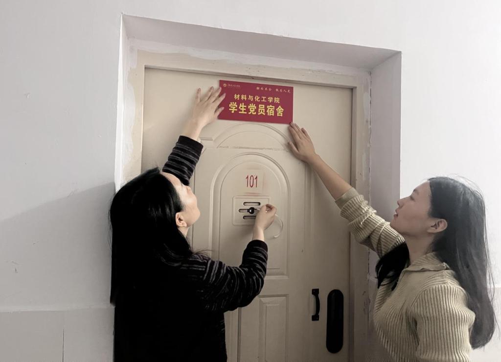 为推动“一站式”学生社区建设和“2024年文明宿舍创建”工作,以优良的寝室环境接受本科教育教学审核评估激励学生党员,11月15日,材料与化工学院学生党支部开展了“一站式”学生社区“亮身份、树榜样”学生党员宿舍挂牌活动,学生公寓临时党支部书记李娥君、学生第二党支部书记王祥若及学生党员参加活动。