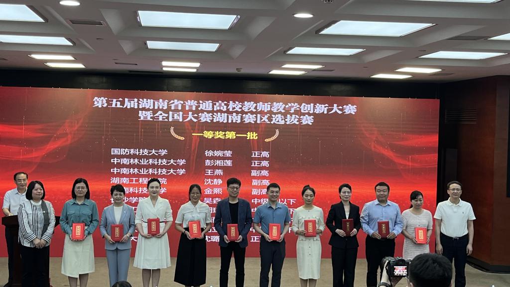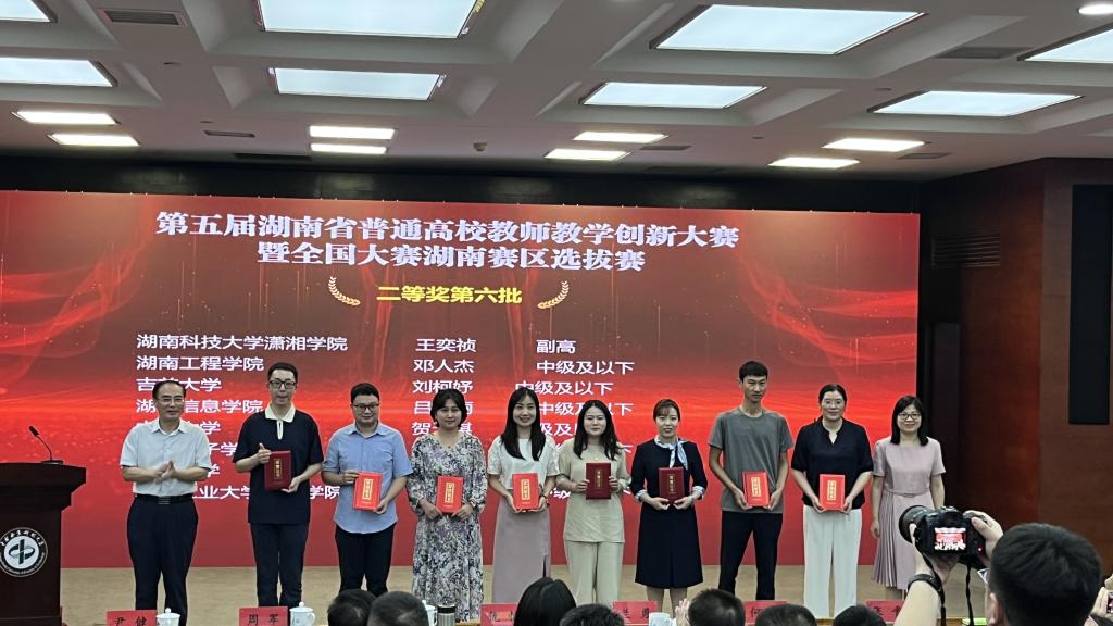 5月24日,由湖南省教育厅主办、中南林业科技大学承办的第五届湖南省高校教师教学创新大赛圆满落幕。我校斩获一等奖4项、二等奖3项,其中,我院教师(团队)沈静、邓人杰分别斩获新工科组一等奖和课程思政组二等奖。同时,我校荣获优秀组织奖,充分彰显了学校教学创新的显著成效和教师团队的卓越实力。