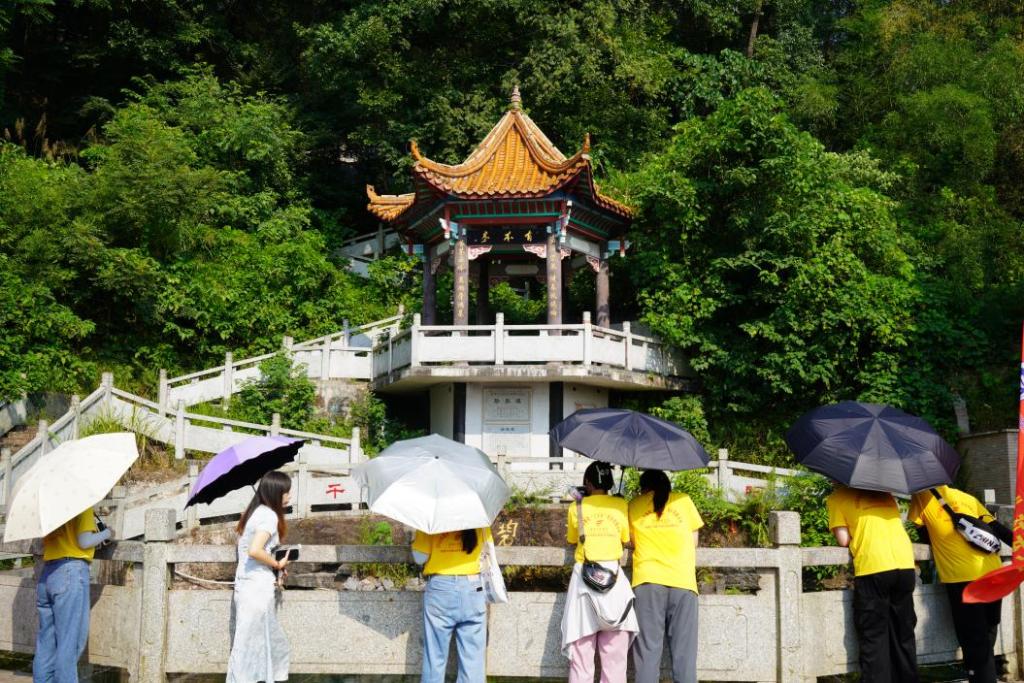 在碧泉村村委主任张英与实践团参观了被誉为“千年圣水”的碧泉潭。随后,实践团走进湖湘学展陈中心,深入了解湖湘文化的发展脉络、代表人物及思想内核。湖湘学展陈中心还安排了传统团扇制作、香囊缝制等文化体验活动,让青年学子在实践中深刻感受湖湘文化的魅力。期间,实践团负责人王祥若与张英深入交流,探讨如何将湖湘文化与思政教育结合,为开展“行走的思政课”积累宝贵经验。