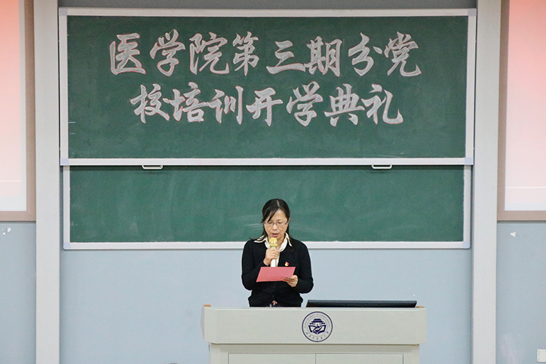 10月29日晚,医学院分党校第三期入党积极分子党课培训班开学典礼在3117教室成功举行。医学院党委书记、分党校校长文红艳,信息科学与工程学院副院长丁长松,医学院党委副书记、分党校副校长王健,信息科学与工程管理学院学生科科长李晟,医学院学生科科长、分党校办公室主任李玉冰,医学院专职组织员、分党校党政办主任廖海燕以及全体入党积极分子共同参加了此次典礼。
