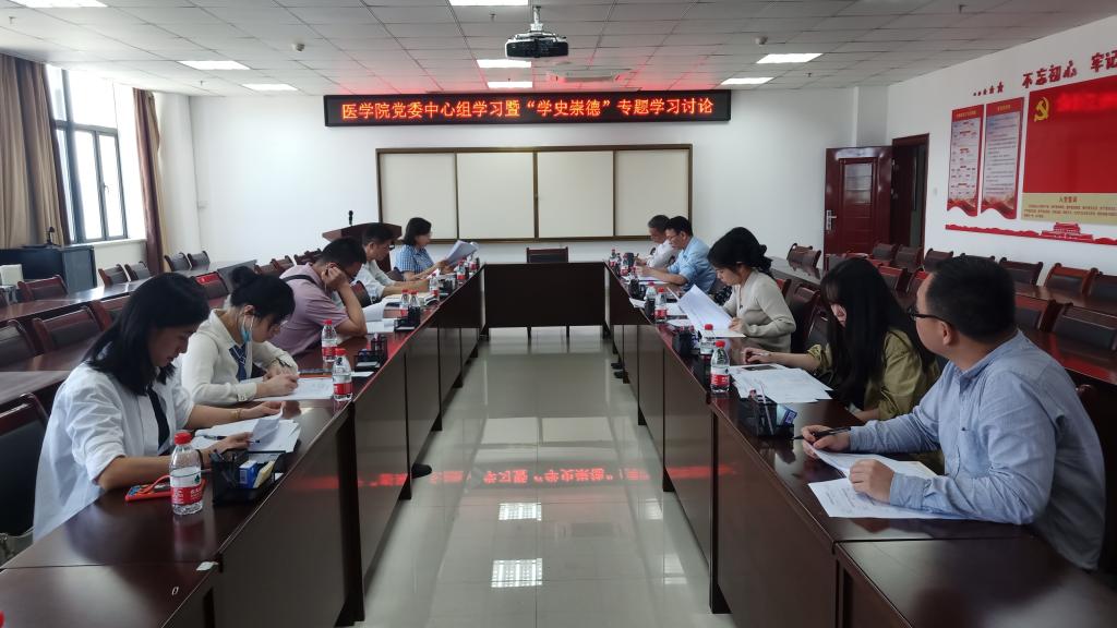 5月8日上午医学院党委中心组学习暨“学史崇德”专题学习研讨在学院会议室召开,党委成员及支部书记参加会议。