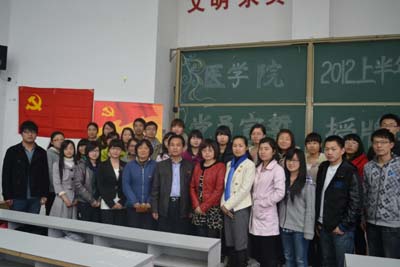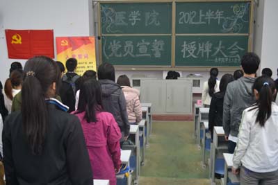 3月29日下午,医学院2012上半年党员宣誓暨授牌大会在1306教室举行。医学院党总支书记、院长张秋雁教授,学生管理科老师、新老党员共同参加了此次大会。