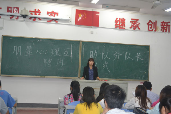 2012年9月24日16:30,医学院朋辈心理互助队分队长聘用仪式在1209教室举行。医学院学生管理科祁老师和黄老师、2010级各班寝室代表和班级心理委员约100人参加了会议。