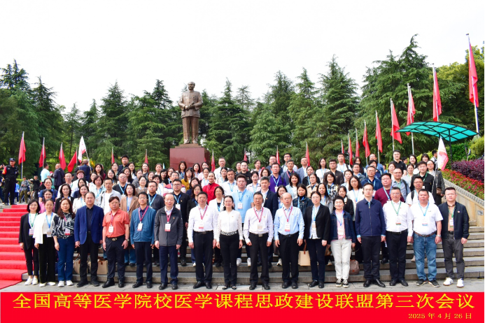 4月25日至27日,由全国高等医学院校医学课程思政联盟理事会主办,我校承办的全国高等医学院校医学课程思政建设联盟第三次大会在我校召开。大会以“不忘初心 做四有好老师”为主题,吸引来自北京大学、清华大学、中山大学、西安交通大学等34所医学院校的专家学者们,以及人民卫生出版社、湖南省教育厅等单位领导嘉宾参会。我校党委书记戴爱国、校长易刚强、党委副书记汤文胜、副校长喻嵘等出席活动。