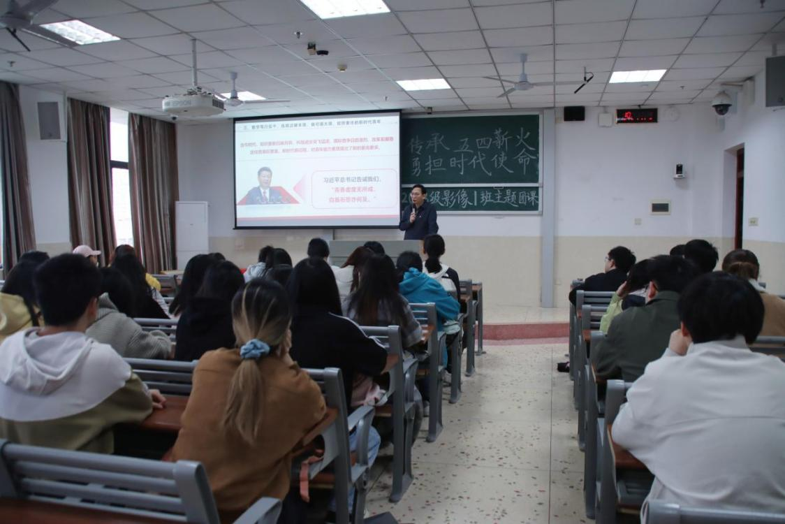 4 月 22 日上午,在五四运动 107 周年、中国共产主义青年团成立 104 周年到来之际,医学院 2023 级医学影像学 1 班在含浦校区济世楼 603 教室开展 “传承五四薪火 勇担时代使命” 五四青年节主题团课。医学院党委书记雷晓明担任主讲,学院团委书记廖海燕主持,学生科副科长艾力扎提·吐鲁洪、2023级医学影像学1班全体同学参加本次活动。
