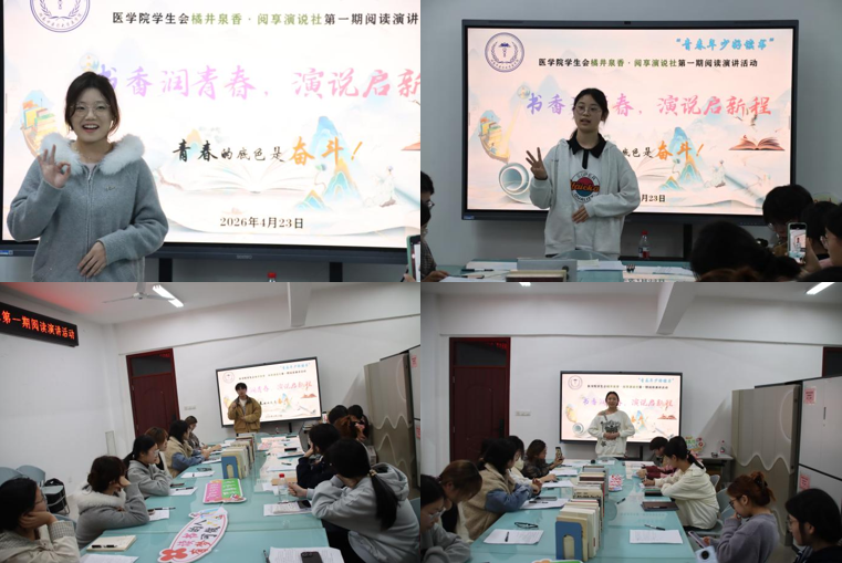 本次阅读演讲活动不仅是一次深入的交流,更是一次扎实的训练。以“读”促思,让同学们在书中照见自己;以“讲”促练,让同学们在表达中磨砺逻辑与勇气。世界读书日的意义,或许正在于此:不止于翻开一本书,更在于合上书之后,能把读到的力量,讲出来、做出来。未来,医学院学生会将继续以“橘井泉香・阅享演说社”为平台,推动阅读与表达融合训练,让更多青年学生在书香中涵养底气,在演讲中锻造影响力,以更自信的姿态,书写属于新时代青年的奋斗篇章。