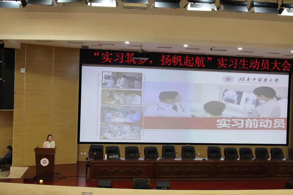 4月22日下午四点半,湖南中医药大学医学院“实习筑梦,扬帆起航”实习生动员大会在含浦校区第三教学楼学术报告厅顺利召开。本次实习动员大会由实习科副科长李佩主持,教务处副处长谢海波主讲。医学院党委副书记任婷、学生科科长李玉冰、学生科副科长廖海燕、辅导员李轶哲、辅导员罗太石以及2018级口腔医学专业、2019级医学检验技术专业全体同学参与了本次动员大会。