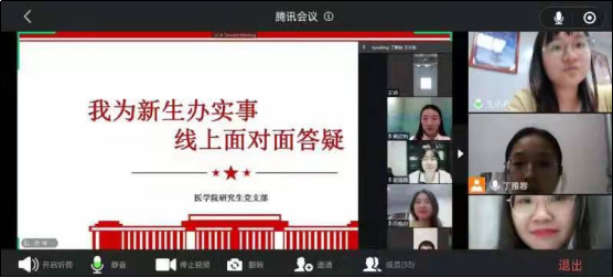 新学期伊始,为确保2021级新生顺利入学入校,帮助新生尽快适应新的学习生活环境。2021年9月9日(周四)晚19:00,医学院研究生党支部举办了新生线上答疑会。会议由支部书记刘璐老师主持,支部全体党员,预备党员积极分子及全体新生参加本次会议。首先,刘璐老师就返校时间、返校前准备工作、报到流程以及疫情期间的返校注意事项等向新生们进行了传达和解读。针对收集到的新生问题,她从返校事项、教务、科研等几个方面进行了逐一回复。随后,与同学们在线上进行互动答疑。