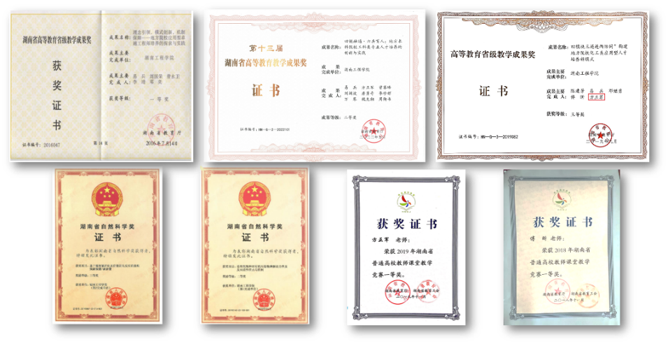 教师潜心教学,获省课堂教学竞赛一等奖和二等奖各1项,获湖南省高等教学成果奖一等奖等省级成果奖3项。获批国家级课程2门,省级一流本科课程3门,开设新工科和校企联合开发课程4门,主编出版核心课程教材2部。