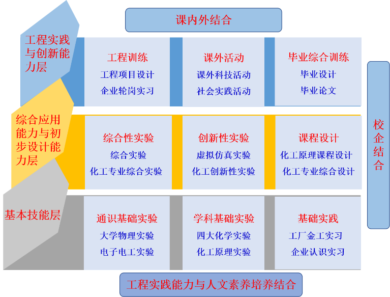 实施校外实习基地与校内实训基地相结合、课内实验与课外科技创新相结合、现场操作与虚拟仿真相结合的“三层次”教学模式,加强实践教学过程管理,构建校企联合考核与评价机制和体系,通过基本技能层到综合实践层到工程应用层,增强学生工程实践能力。