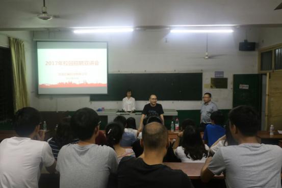 5月22日晚上7:30,劲派经编科技有限公司于我校四教102举行招聘宣讲会。劲派经编公司经理周茂平、化学化工学院轻化专业科研室老师陈镇出席此次招聘会,劲派经编公司员工刘小姐担任主讲人,此次招聘会主要面向轻化工程专业的学生。