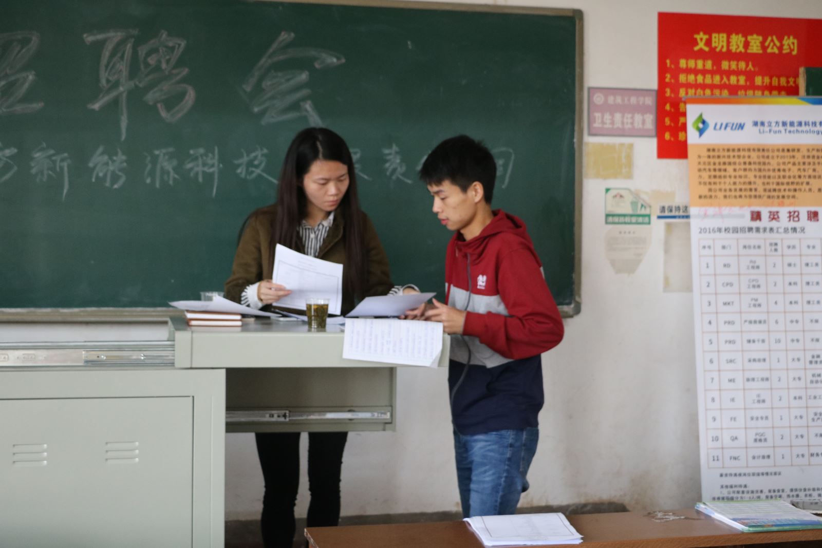 11月3日下午2:30,湖南立方新能源科技有限责任公司在我校四教609举办招聘会。参与此次招聘会的有该公司的招聘主管杨松和人事主管李菊芳以及应届大四毕业生。此次招聘主要面向有关化学方面的多个专业。