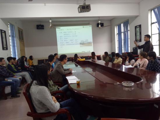 10月26日上午9点,互太纺织控股有限公司携手化学化工学院在四教306举行招聘宣讲会。前来参与此次招聘会的有该公司主讲人梁敏峰、杜耀忠,化学化工学院老师刘思博及化工院部分大四学生,该公司此次招聘主要面向轻化专业的学生。