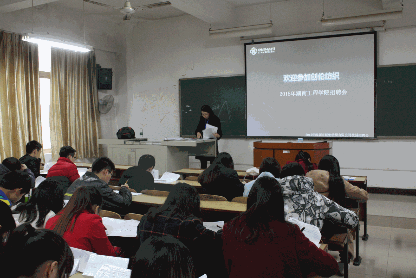 11月22日下午2点,深圳市创伦纺织有限公司来我校招聘,创伦公司人力资源部经理张芝兰前来做招聘宣讲,化工学院有意向的同学拿着自己简历前来应聘,现场秩序井然。