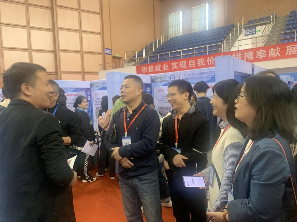 秋季大型供需见面会现场,学院领导班子深入会场与用人单位招聘代表交流,了解用人单位的专业需求和招聘计划,现场邀请相关企业来学院开展宣讲会。他们勉励毕业生找准定位,先就业再择业,尽早确定自己职业岗位。