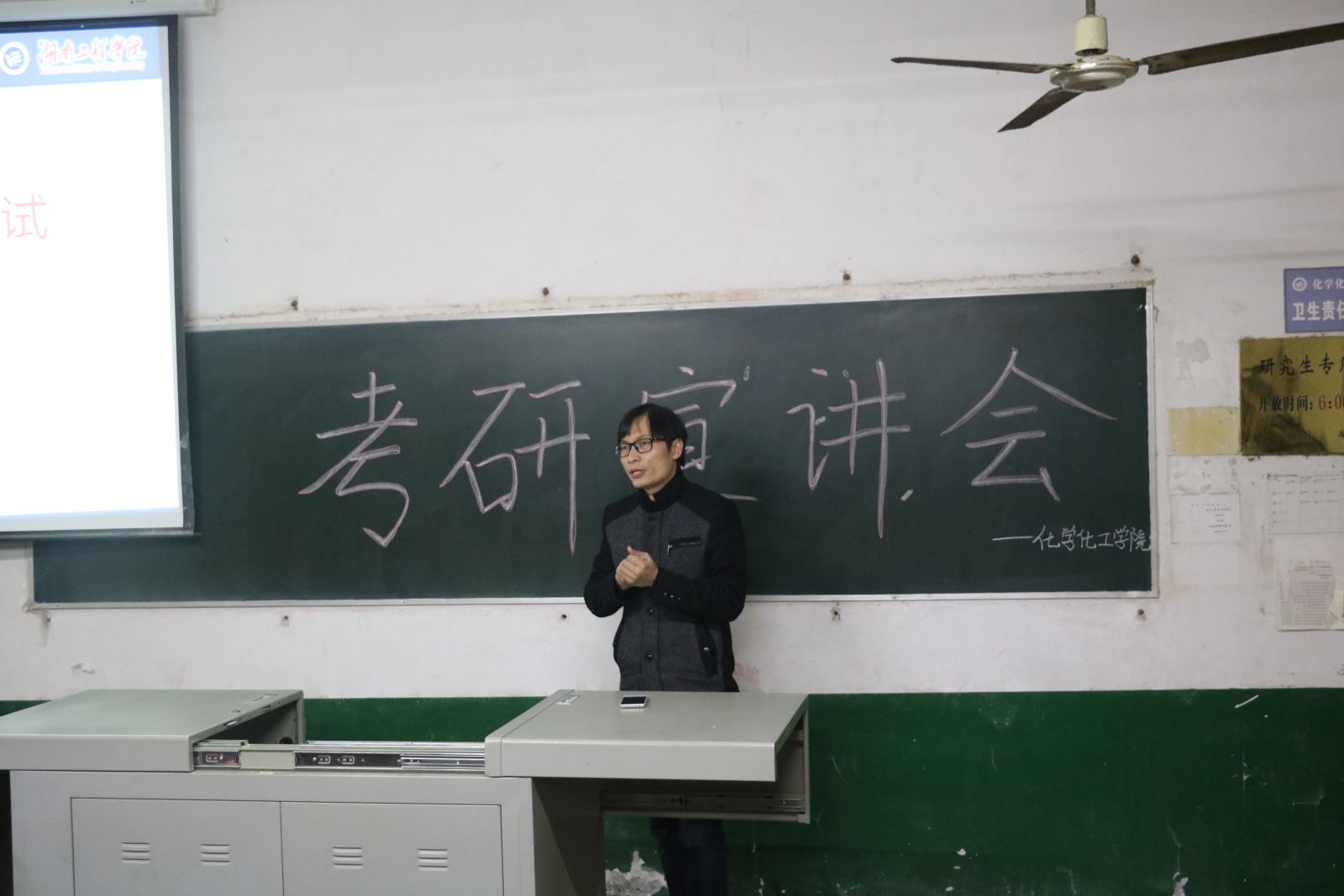 11月25日晚7点,化学化工学院应用化学专业在四教301举办考研宣讲会。本次宣讲会的主讲人为化学化工学院博士吴锋景。应用化学专业全体同学到场聆听。