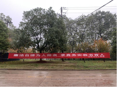 学院高度重视廉政文化建设,在四教旁、红楼前挂上“清正为师当师表 廉洁从教筑师魂”、“廉洁自律为人师表 求真务实教书育人”等标语,积极营造风清气正的校园氛围。