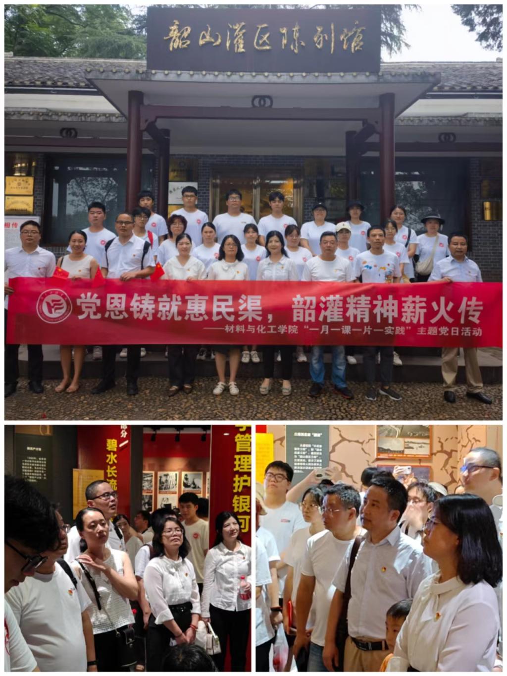 为高质量开展好学习贯彻习近平新时代中国特色社会主义思想主题教育,引导党员干部坚守初心使命、传承红色基因,永葆奋斗本色,让党员干部师生接受思想淬炼和精神洗礼,7月14日,材料与化工学院党委结合主题教育和“一月一课一片一实践”,组织教工党员到水利工程类唯一的省级爱国主义教育基地韶山灌区陈列馆开展实践教育。