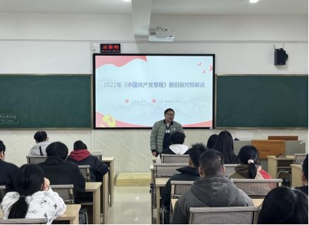 为持续营造浓厚学习宣传氛围,深化理论学习、凝聚思想共识,把党员干部的思想统一到党的二十大精神上来,把力量凝聚到党的二十大各项工作中来,3月21日,材料与化工学院“新学期第一堂党课”在新化工楼602开讲,此次党课是学生党支部书记以“2022年《中国共产党章程》新旧版对照解读”为题为全体学生党员上的党课。