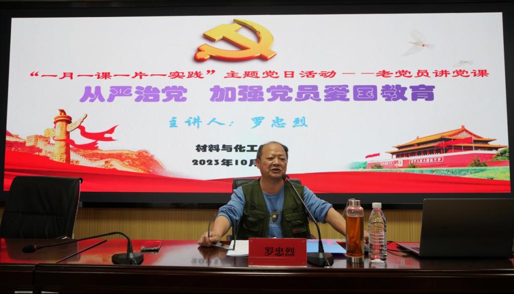 为深入学习贯彻党的二十大精神,激励我院师生党员以新的“赶考”精神、奋楫扬帆的昂扬姿态和矢志奋斗的挺膺担当奋进新征程、展现新作为。10月24日下午,材料与化工学院党委邀请我校原纪委书记、现任校关工委主任、“光荣在党50年”老党员罗忠烈同志在材化楼A301给全院师生党员上了一堂精彩生动的党课,学院100余名师生党员参加。活动由学院党委书记严明主持。