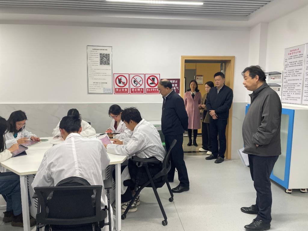 11月13日上午,我校副校长刘鸿翔、资产与实验室管理处处长张湘明、医学院院长成绍武等一行对医学院医学基础教学实验中心进行现场调研,重点查看了实验室仪器设备运行情况与公共设施环境。