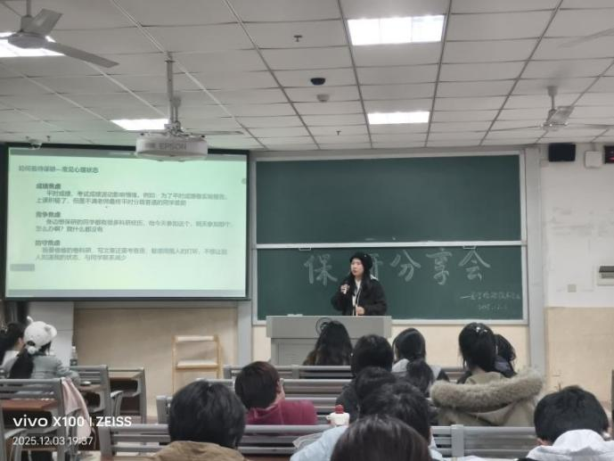 三位学姐分别从不同维度展开讲解,内容精准对接医学检验技术专业的学习特点与保研需求。保研到北京协和医学院的刘晗同学为大家分享了在保研过程中的面试技巧,保研心态;保研到南方医科大学的陈许瑞同学分享了大学的学习方法,科研经历少如何破局等等技巧;保研到华中科技大学的许佳欣同学从院校项目选择、夏令营与预推免的时间线规划,讲到个人简历与陈述的“个性化打磨”,再细致拆解了中英文面试的应答逻辑与心态调整。她们结合自身从理论学习、实验操作到院校申请的全流程实战经验,为在场同学带来了一场干货满满的分享盛宴。