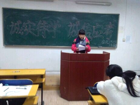 近期,化学化工学院狠抓学风建设,以诚信考试和考风考纪教育为突破口,大力提倡“以诚信考试为荣,以违纪舞弊为耻”的理念,学院学风渐渐浓厚,学生成绩不断提高。诚信考试,需要大家参与,一起为营造和谐温馨的校园风气而努力。