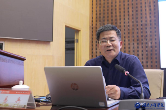 “72年前,我校伴随工业兴国的激情号角在湘潭这方红色热土应运而生。72年来,学校始终牢记使命,丹心耕耘,以工许国,创造了‘锲而不舍、敢为人先’的湖工精神。”易兵从地理位置,历史沿革,发展历程等多个方面向新生们讲述了湖南工程学院的发展史。