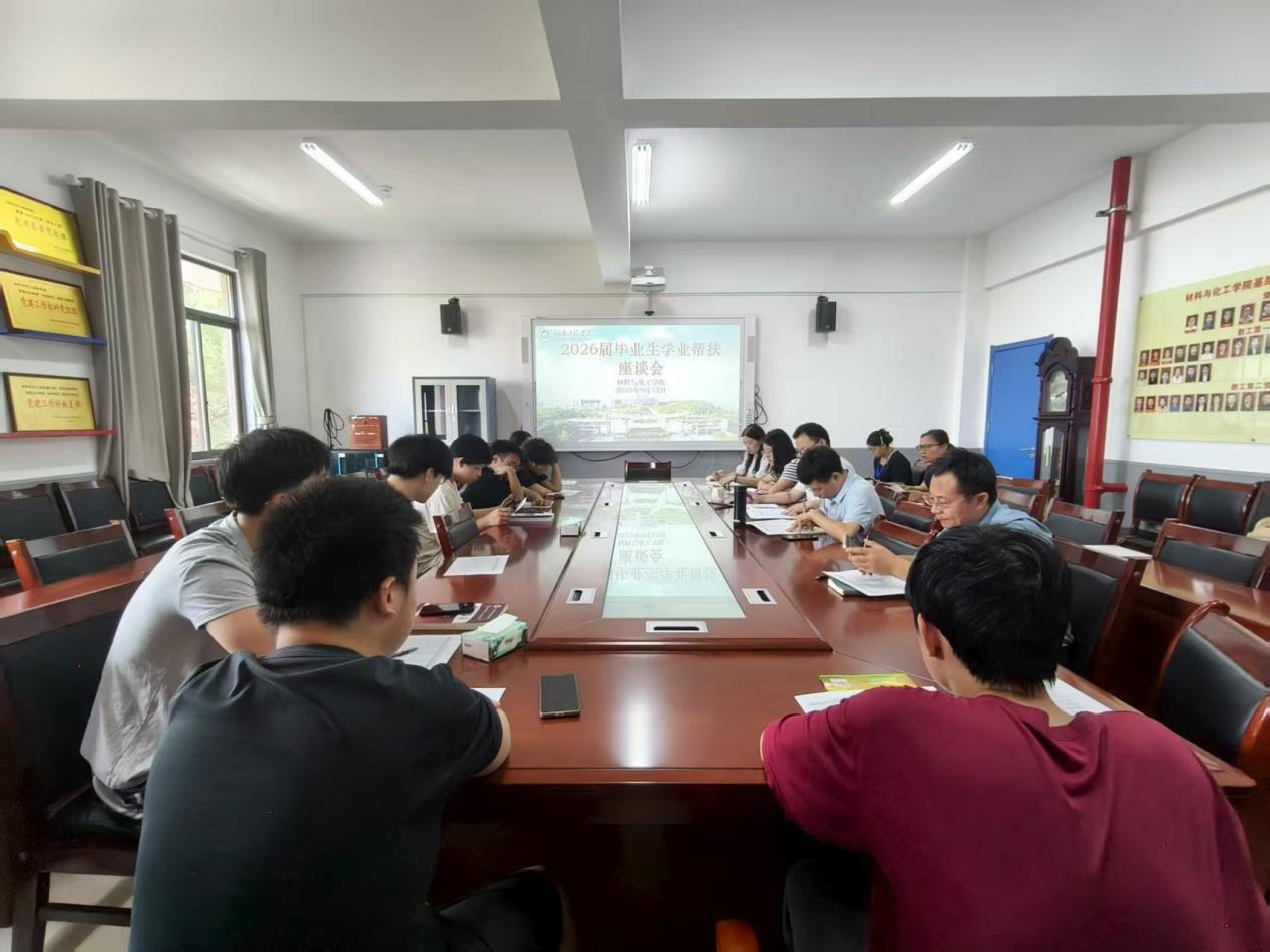 为落实“以学生为中心”教育理念,精准掌握毕业生学业动态,保障2026届毕业生顺利毕业,9月12日,材料与化工学院在材化楼A304召开学业帮扶专题座谈会。学院院长张儒、党委副书记陶连洲、副院长兰东辉及教务秘书杨辉琼、辅导员王祥若、毕业班班主任共同参会。