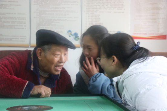 志愿者们,迎着寒风,扛着细雨,来到了温暖的天佑敬老院进行慰问此次活动。到了敬老院的门口,志愿者们就跟老人热情的打招呼,祝福新年。瞬间志愿者和老人之间的距离便拉近了不少,感到无比的亲切。在整个活动开展期间,志愿者们有的陪老人们拉拉家常、讲讲笑话,给老人们带去欢笑和快乐;有的帮老人按按摩、捶捶背、洗洗脚,使老人变得轻松舒适;有的和老人唱歌,听老人讲讲过去一年发生了什么事、讨论一下对新的一年有什么期待。有些老人跟我说,他们的儿女过年也不回来看看他们,但是他们也理解自己的孩子。记者内心有点心酸,毕竟新年就是要团团圆圆的,但是老人们却不能在新年的气氛下见到自己的儿女。虽然他们新年儿女不在,但我们爱心社的志愿者会在新的一年里,陪伴着他们。整个敬老院都萦绕着欢声笑语,看到老人们灿烂的笑容,听到老人们爽朗的笑声,志愿者们感受到了奉献的幸福和温暖。
