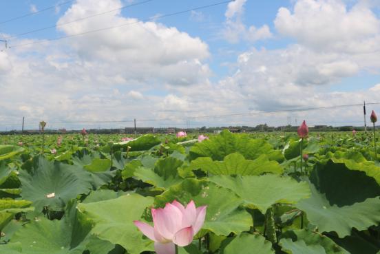 在乡镇政府的带领下,河口镇新建了特色农产品基地2个,其中湘莲基地1380亩,西瓜基地300亩,还引进了1家农业龙头企业,产值过1000万元。我院志愿者队在镇人大副主席张石强的引领下,志愿队寻访了湘莲特色基地。在前往特色基地的途中,均能看到道路两旁有出售本地西瓜的摊点。据了解,本地西瓜销量极高旺季时可达每日万斤,西瓜种植极大的解决了农户解生计问题。随后,志愿队来到了千亩莲田的所在地。正值盛夏,莲花盛开,不少人因湘莲的美景慕名至此。据了解,湘莲特色种植基地是当地经济的核心,它不仅推动了河口镇的旅游业发展,还引申出了诸多湘莲相关产业,极大的带动了当地的经济发展。