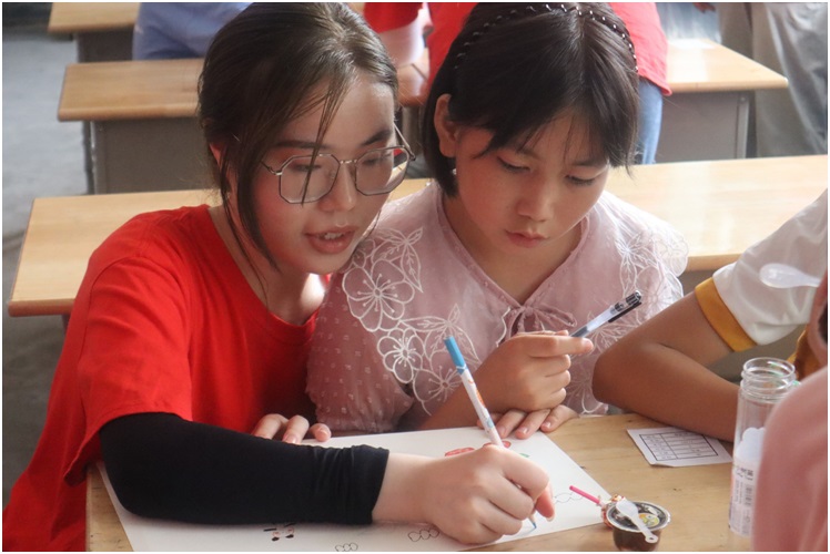 “三下乡”活动正式开始,实践团成员早早地来到教室,大家分工协作,一部分成员前往教学楼布置好场地,一部分成员前往校门口、附近村落前去宣传,告知他们上课地点、课程。课堂上,成员们为了尽快和孩子们熟悉起来,主动和小朋友打招呼、询问他们的喜爱,消除小朋友的陌生感。“在刚开始的交流中,他们害羞、胆怯,但通过交流,我发现大部分留守儿童有很强烈的好奇心和求知欲。”实践团成员说道。