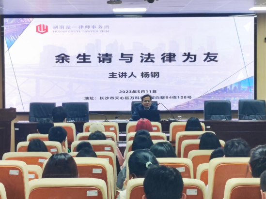 为进一步普及法律知识,提高同学们法律素养,5月11日,材料与化工学院邀请我校2001级校友、湖南楚一律师事务所专职律师杨钢在新化工楼301会议室作专题普法讲座。学院党委副书记罗荃主持活动,学院100余名学生参加。