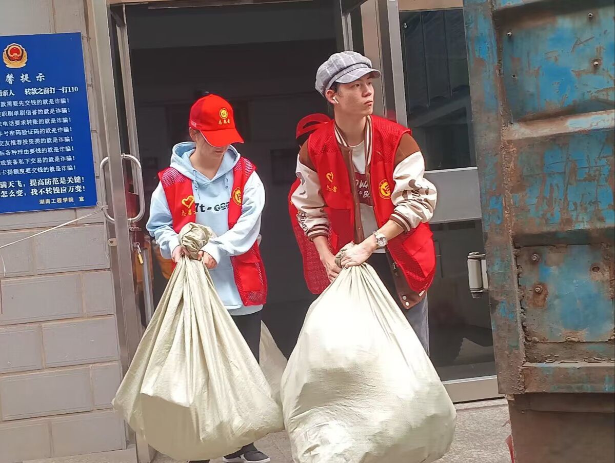 开学伊始,爱心社的小伙伴们来校就开始清理、翻晒、归整捐赠物资,想尽快把这温暖人心的衣物送到远方的亲人们。