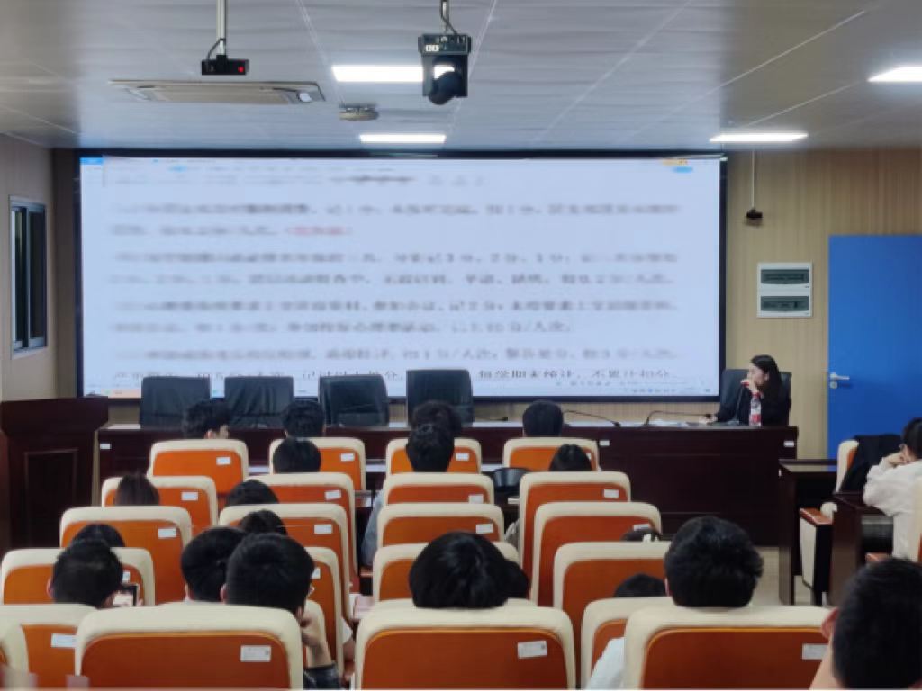 黄玉娟介绍了该条例的制定目的、奖惩办法、执行程序等,详细讲解了考核内容和计算方法,其中包括班级责任、学分建设、宿舍管理等共十一大类。她在讲解过程中对相应条例引用了生动案例,加深了同学们对五育并举班级考核条例的理解。在会议的最后,黄玉娟专门设置了答疑环节,让同学们学有所获。