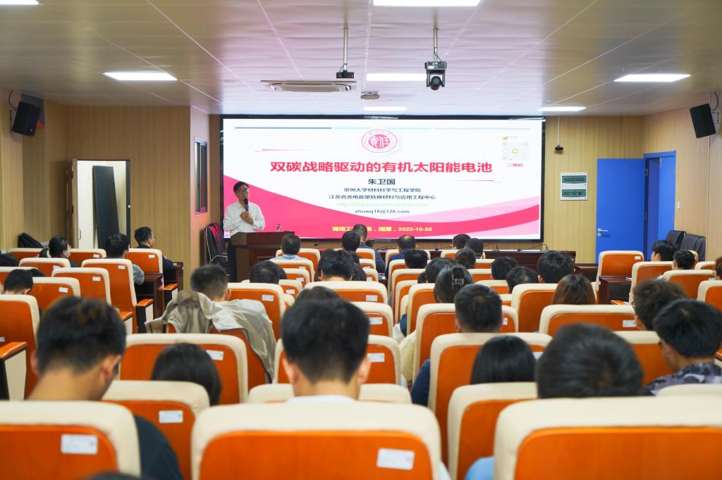 10月30号下午,国务院特殊津贴专家、江苏省“双创计划”高层次人才、湖南省杰出青年基金获得者、常州大学朱卫国教授受邀来校,在材化楼A301作题为“双碳战略驱动的有机太阳能电池”专题学术讲座,吸引了材料与化工学院众多师生参加。讲座由材料与化工学院院长邓继勇主持。