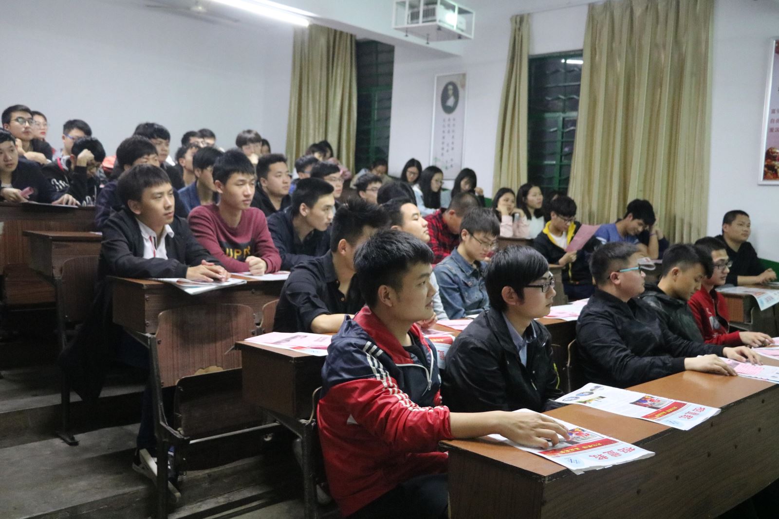 2018年4月26日晚上7点30分,英德极丰有限公司在我校4教102举行了校园招聘宣讲会,公司人力资源部经理黄成军作为主讲人,一同前来的还有公司优秀校友朱志明。