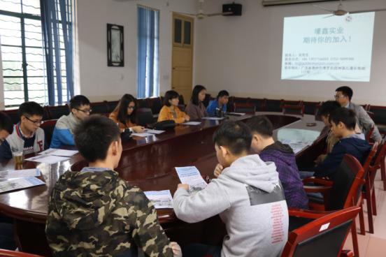 2017年10月18日上午10点,广东壕鑫实业有限公司于我校四教306举行招聘宣讲会。壕鑫实业有限公司生产总经理吴进清出席本次会议。吴进清作为主讲人,此次招聘会主要面向轻化工程和纺织专业的大四学生。