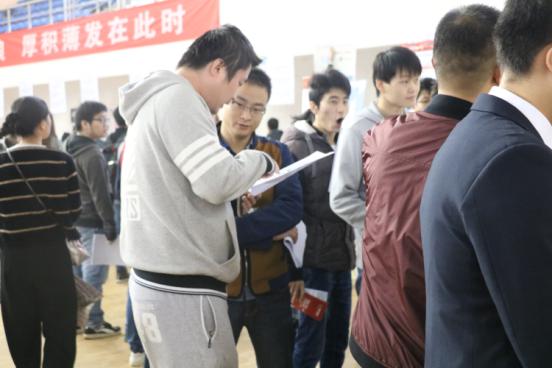本次见面会有300多个用人单位前来招聘我校应届毕业生,近千名同学参加了此次见面会。上午九点,招聘会如期而至,同学们手持精心准备的简历排队有序地进入会场,人山人海,用人单位方布置好自己的会场为求职者解答疑难,毕业生也都满怀信心,穿梭于人海中,选择自己心仪的公司投放简历,积极与用人单位代表交流,就公司前景、应聘岗位、行业前景、专业是否对口、地域分布等问题进一步进行了解。也有些14级的学生来到用人单位处咨询学习,提前感受就业的紧张气氛。大多数用人单位也积极地拿着自己的宣传单和协议耐心地为同学们介绍,此次招聘会持续了将近4个小时。