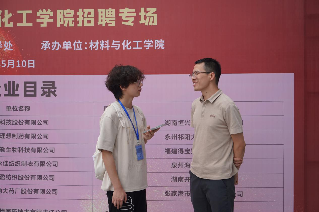 2008届校友刘坚表示:“此次回到母校招聘,倍感亲切。学弟学妹们都非常优秀,希望有更多的材化学子加入我们公司。”