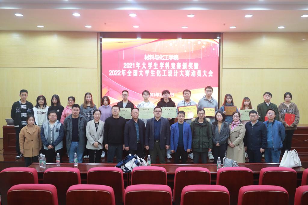 11月17日晚7点,材料与化工学院在二报告厅举行2021年大学生学科竞赛颁奖暨2022年全国大学生化工设计大赛动员大会,表彰2021年在学科竞赛中获得优异成绩的学生和指导老师,并做2022年赛事动员。